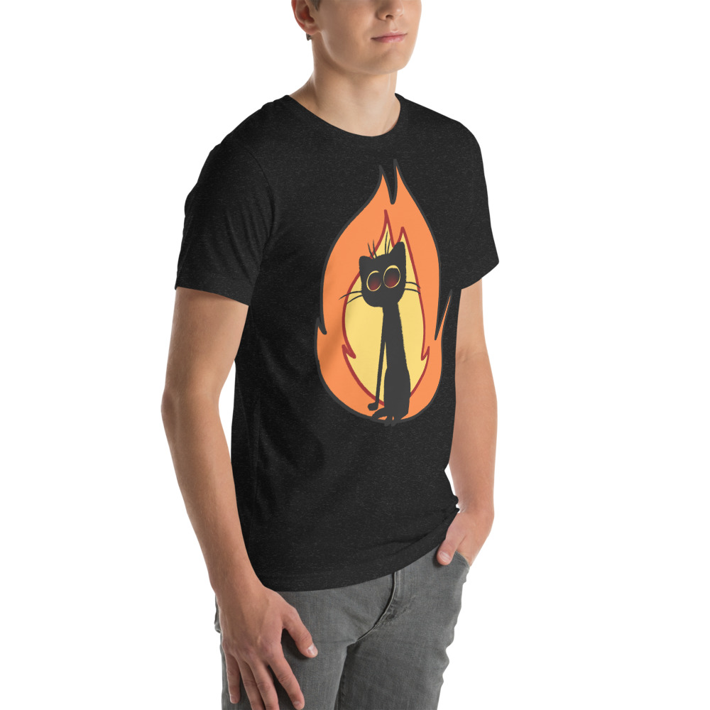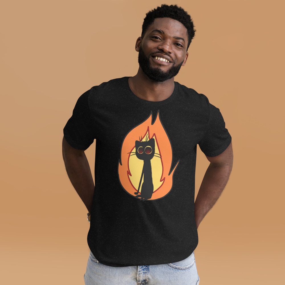 Flaming cat is everywhere, and even on this shirt.