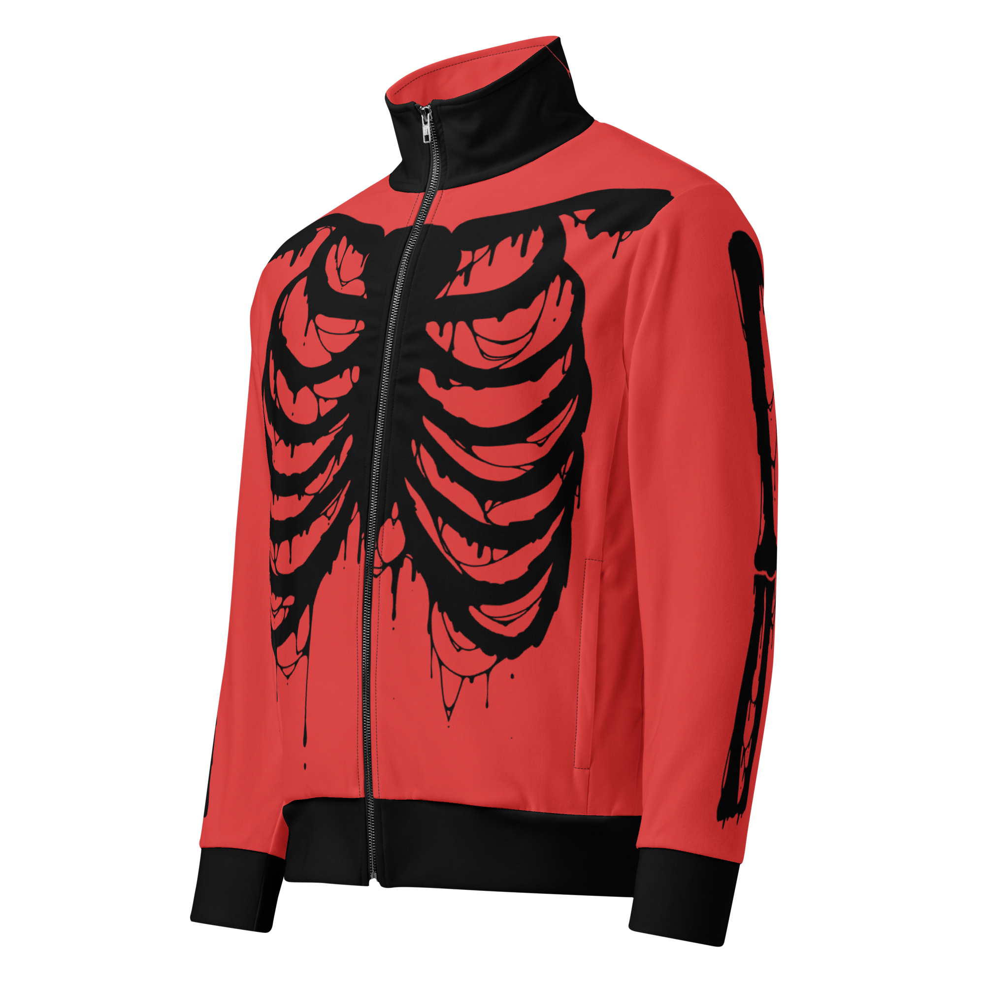 Stay warm and creepy with this zip-up track jacketperfect for workouts, outdoor activities, and everyday wear. It is made from recycled materials, has brushed fleece inside for warmth, and zippered pockets.